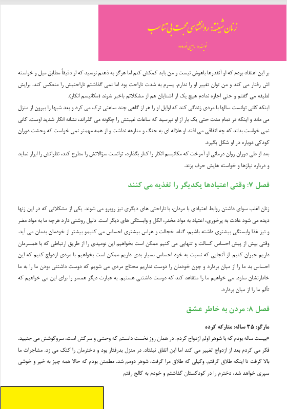 • فصل اول: عشق ورزیدن به مردی که محبت شما را بی‌جواب می‌گذارد / بخش یک