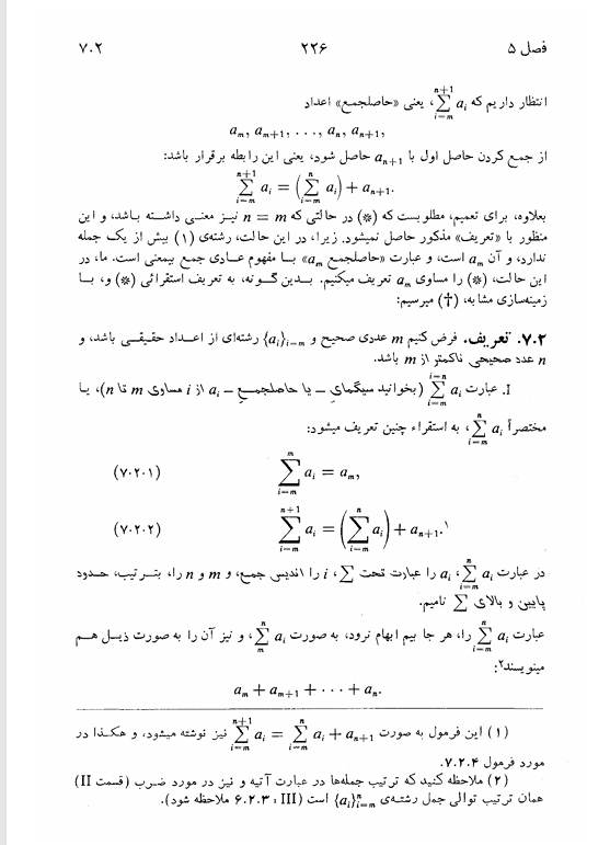 📖بخشی از کتاب آنالیز ریاضی جلد 1: مصاحب در این اثر، با رویکردی منطقی و ساختارمند، خواننده را از مفاهیم مقدماتی مانند مجموعه ها، توابع، دنباله ها و سری ها، به سوی مباحث پیچیده تری چون حد، پیوستگی، مشتق گیری، انتگرال گیری و توابع حقیقی هدایت می کند. او با بهره گیری از زبان فارسی فاخر و علمی، تلاش کرده است تا مفاهیم انتزاعی ریاضی را به گونه ای بیان کند که هم دقت ریاضی حفظ شود و هم خواننده با زبان مادری خود ارتباطی عمیق تر با موضوع برقرار کند.