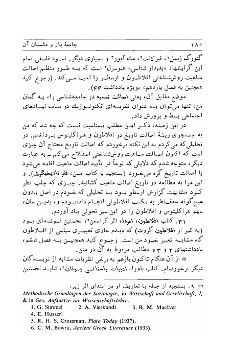 📖بخشی از کتاب جامعه باز و دشمنان آن: پوپر در این اثر، از جامعه ی باز دفاع می کند؛ جامعه ای که در آن افراد آزادند تا اندیشه های خود را بیان کنند، نهادها قابل نقد و اصلاح اند، و قدرت سیاسی محدود و پاسخ گوست. در مقابل، او به شدت از جامعه های بسته انتقاد می کند؛ جوامعی که در آن ها حقیقت مطلق، رهبری کاریزماتیک، و ساختارهای غیرقابل تغییر حاکم اند. دشمنان جامعه ی باز، از نظر پوپر، فیلسوفانی اند که با اندیشه های خود زمینه ساز اقتدارگرایی شده اند؛ از جمله افلاطون، هگل و مارکس.