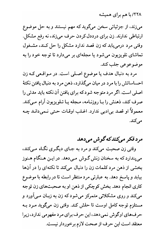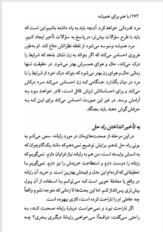 📰مشخصات کتاب با هم برای همیشه: این کتاب با نگاهی روان شناختی و عاطفی، به بررسی تفاوت های بنیادین میان زنان و مردان در ابراز احساسات، نیازهای ارتباطی، و شیوه های حل تعارض می پردازد و راهکارهایی عملی برای حفظ عشق و صمیمیت در طول زندگی مشترک ارائه می دهد.