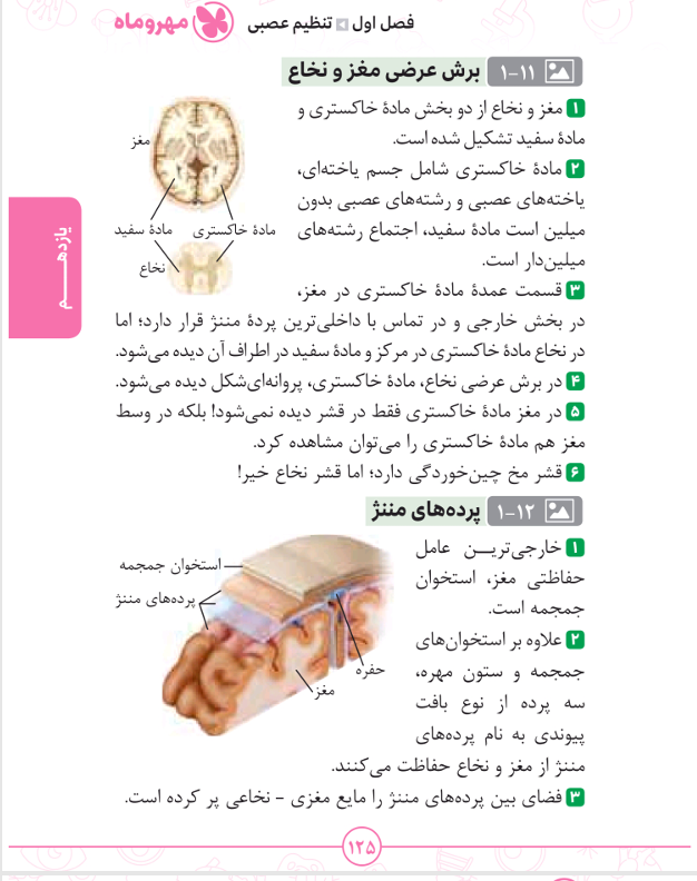 📖بخشی از کتاب زیست تصویری کنکور مهر و ماه: در زیست شناسی کنکور، تصاویر کتاب درسی نقش حیاتی دارند؛ بسیاری از تست ها مستقیماً از همین تصاویر طرح می شوند. این کتاب با دسته بندی منظم فصل به فصل، تمام تصاویر کتاب درسی را بررسی کرده و نکات مهم، پرتکرار و مفهومی هر تصویر را به صورت خلاصه و قابل فهم ارائه داده است. طراحی رنگی صفحات باعث شده تا مطالب بهتر در ذهن بمانند و مطالعه آن خسته کننده نباشد.